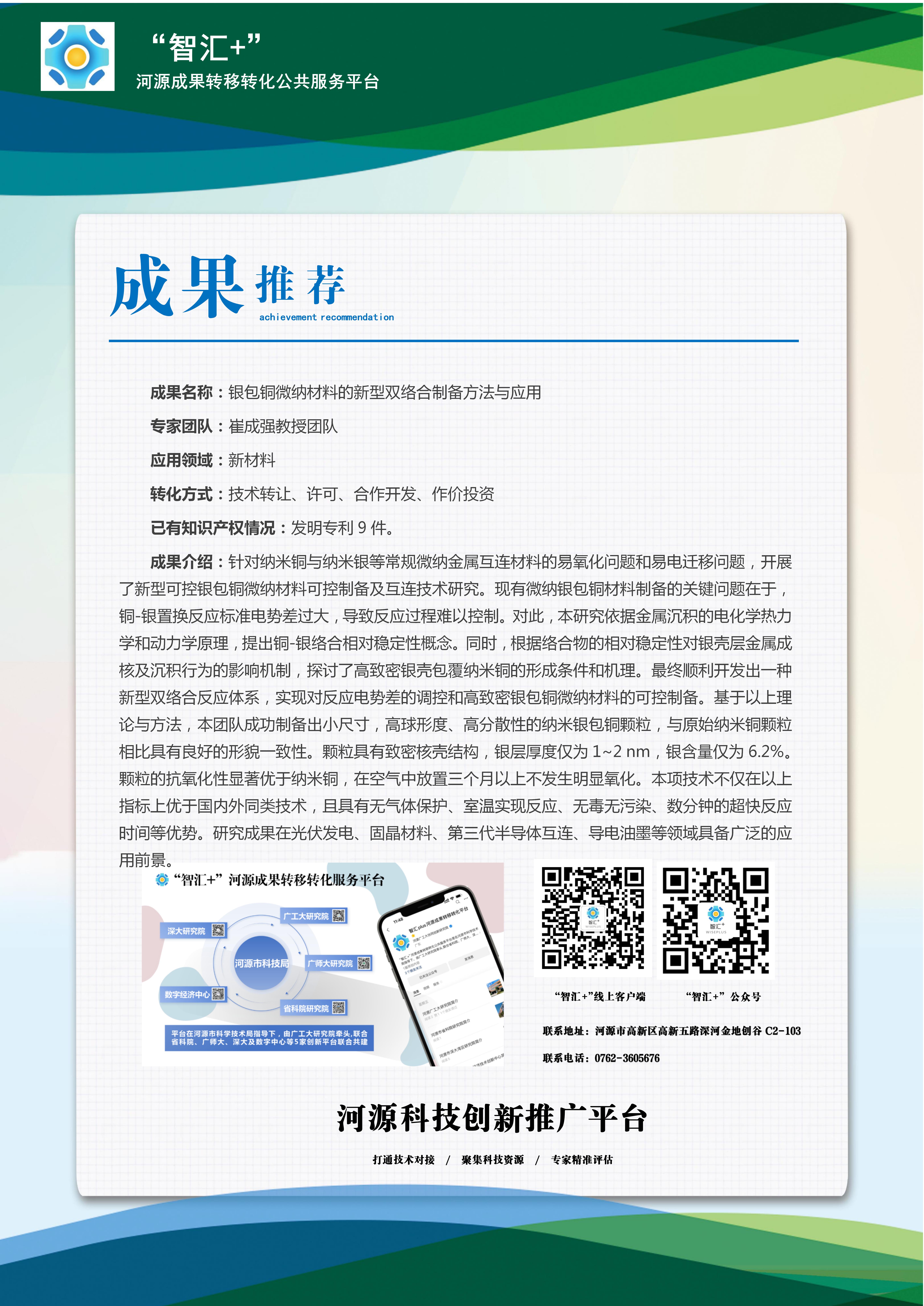 智汇推荐丨银包铜微纳材料的新型双络合制备方法与应用